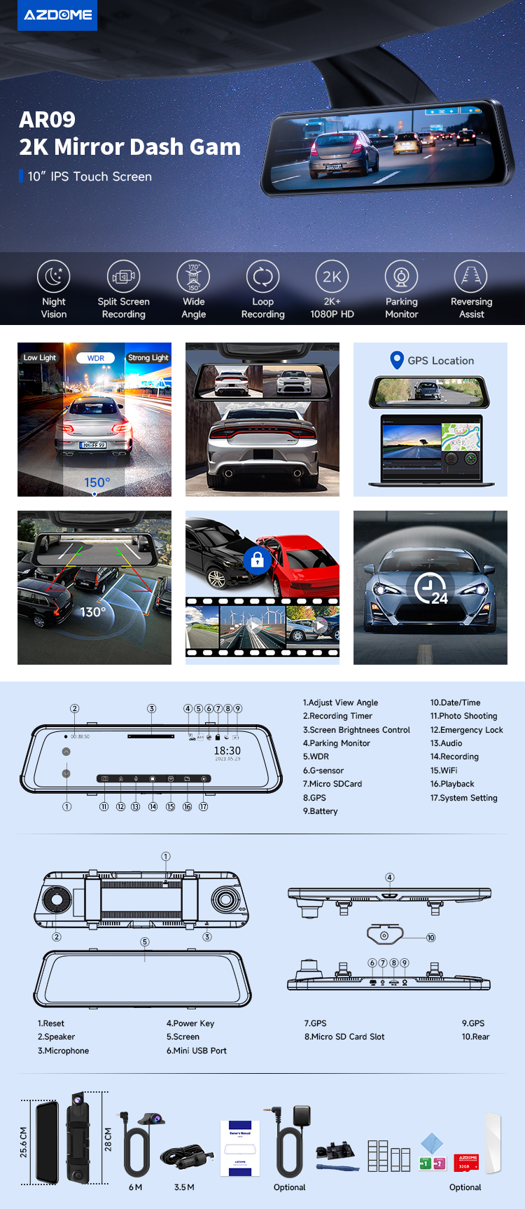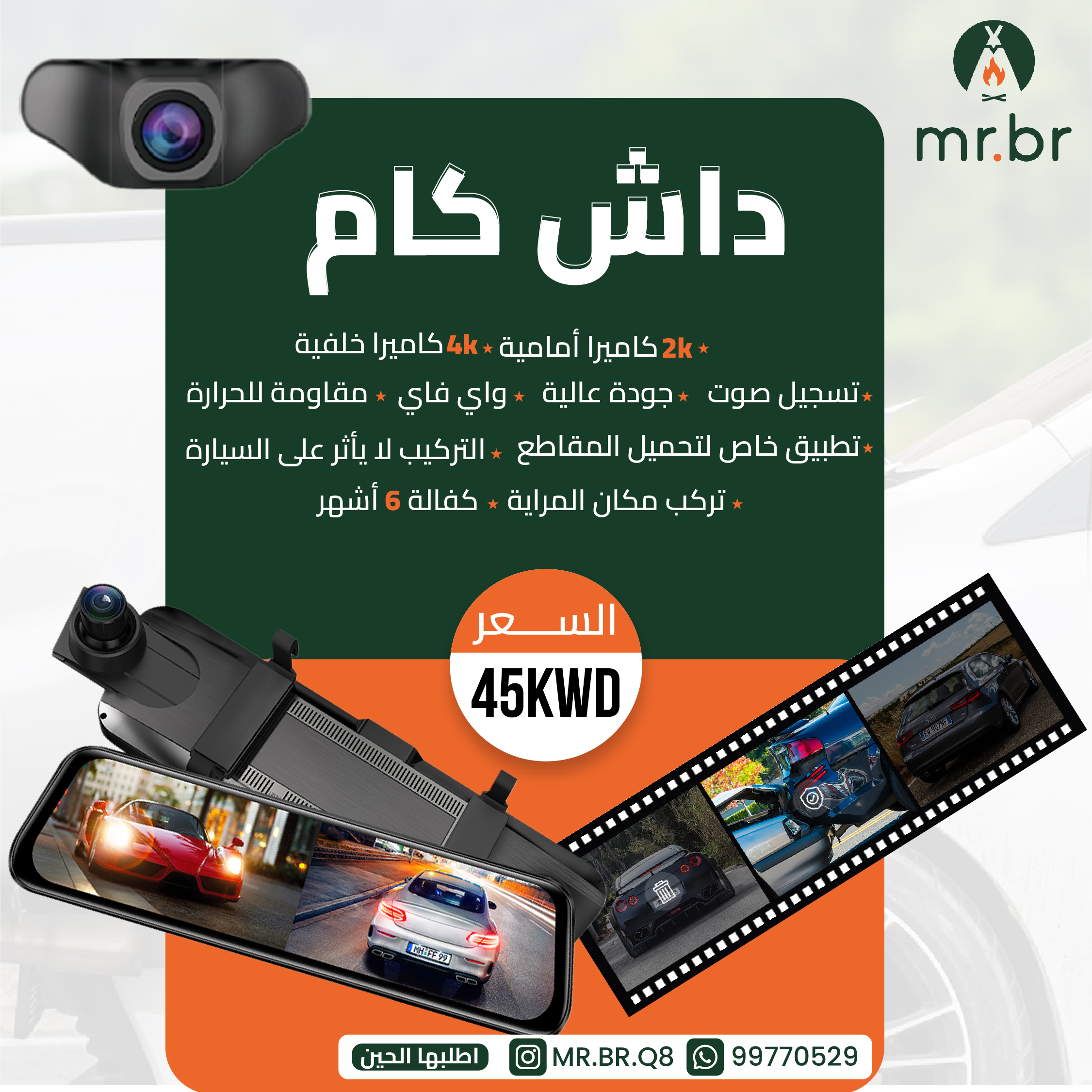 كاميرا أمامية 2k كاميرا خلفية 4k تسجيل صوت جودة عالية واي فاي مقاومة للحرارة تطبيق خاص لتحميل المقاطع التركيب لا يأثر على السيارة تركب مكان المراية كفالة 6 أشهر